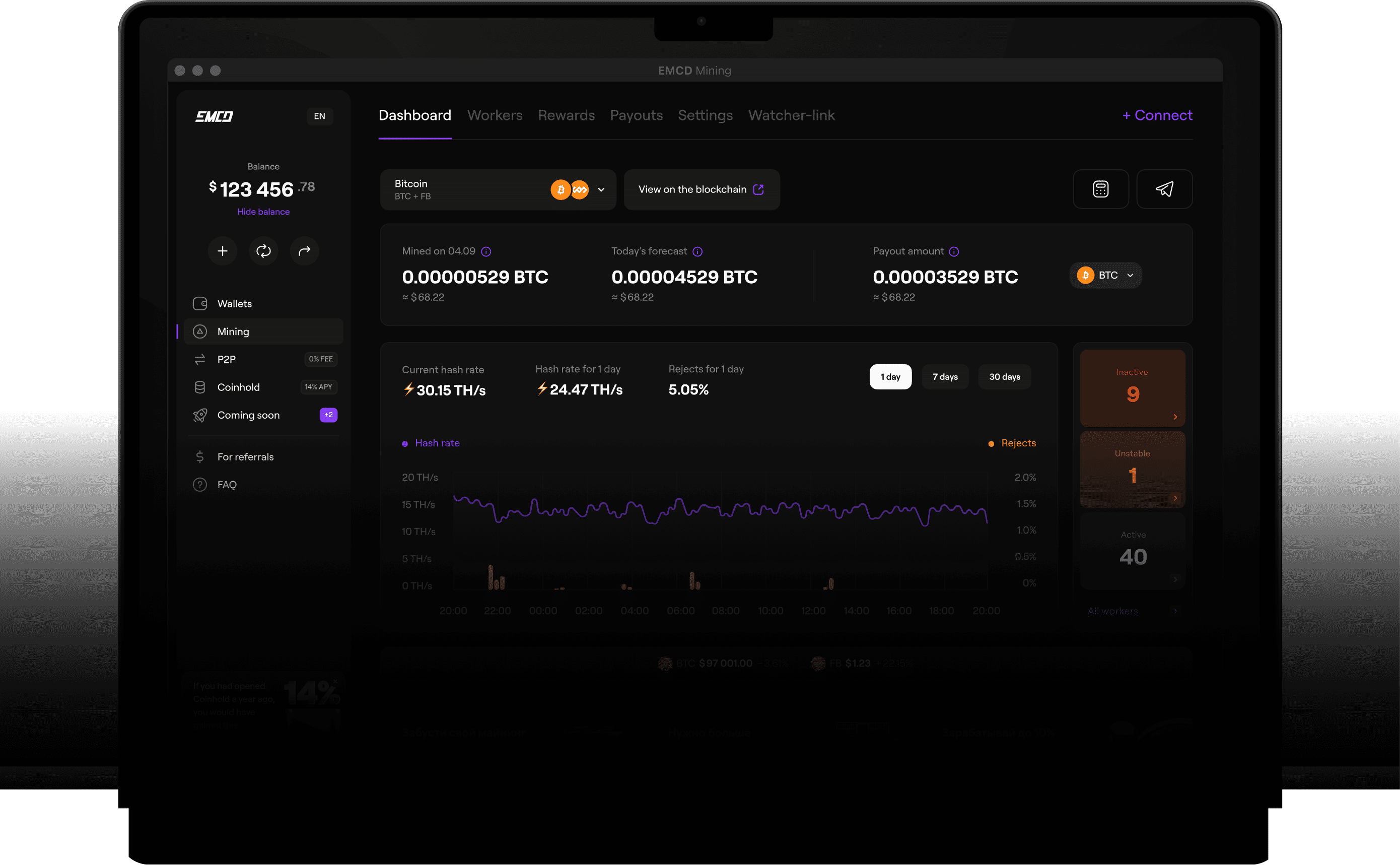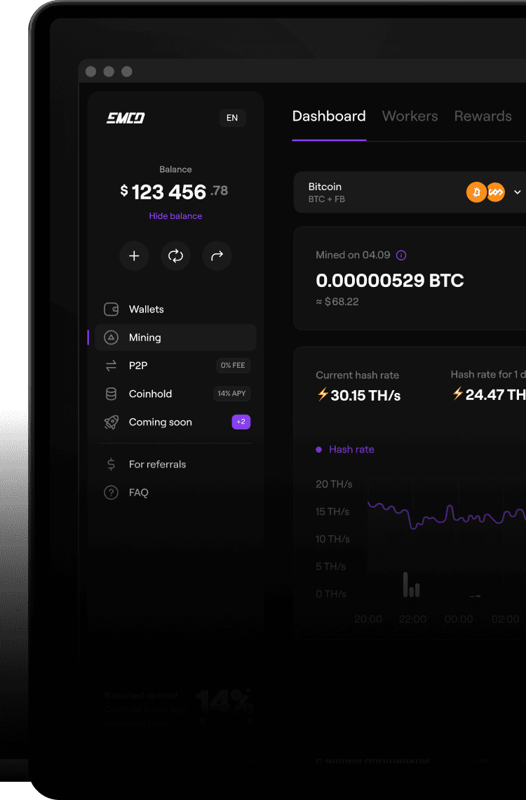 EMCD is more than just a pool. It’s a cutting-edge crypto fintech platform designed to boost your profits. With zero-fee mining*, EMCD is the perfect choice for any real miner.