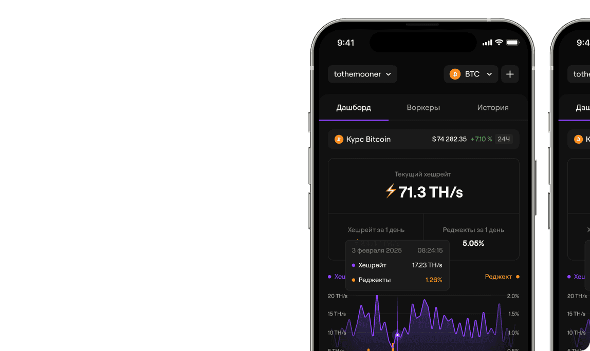 Интуитивно понятный интерфейс сайта обеспечивает пользователям легкий доступ к личному кабинету майнера с возможностью настраивать майнинг, отслеживать данные о работе оборудования и статистику.